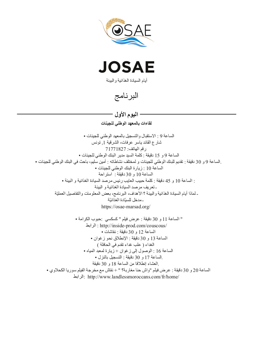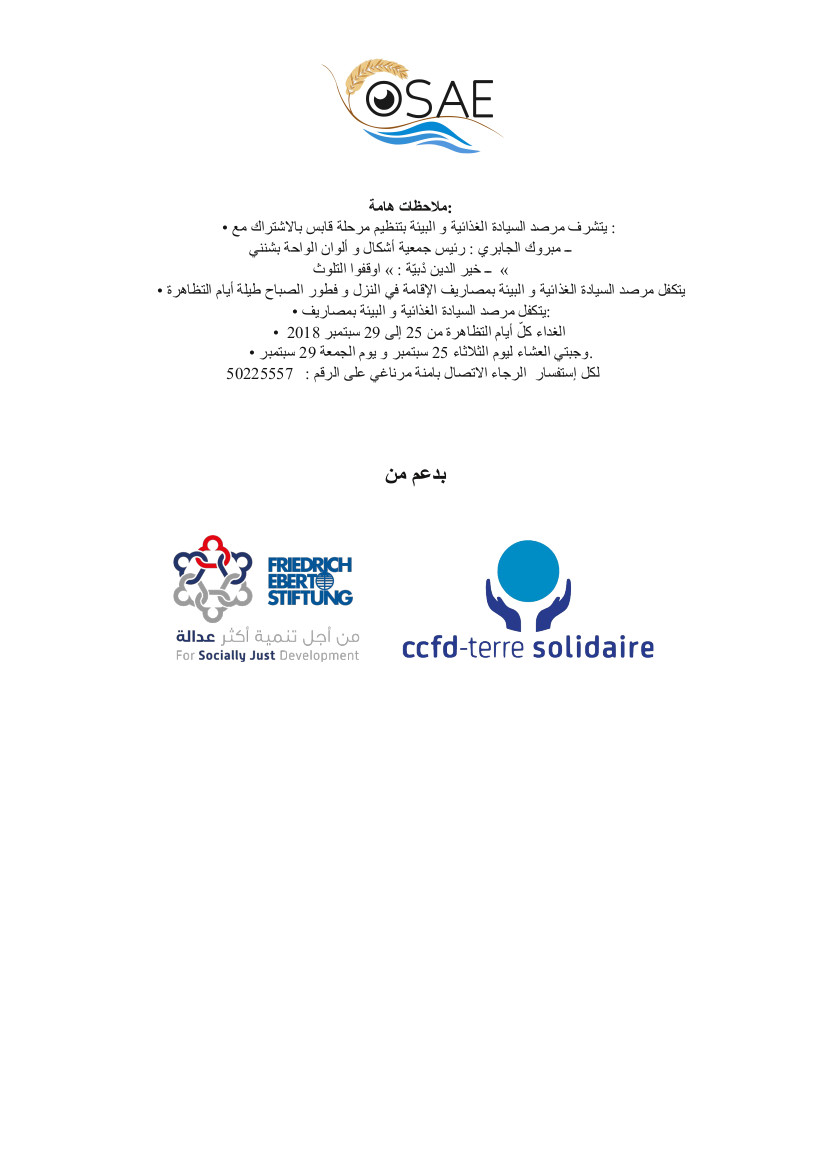 ينظّم مرصد السيّادة الغذائيّة و البيئة الدورة الأولى لأيام السيّادة الغذائيّة والبيئة و يدعوكم إلى المشاركة الفعليّة فيها.